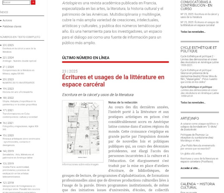 Escritura en la cárcel y usos de la literatura Artelogie 23, año 2025 https://journals.openedition.org/artelogie/16142 Ya puede verse online el número sobre escritura en la cárcel y usos de la… Read More »Dossier